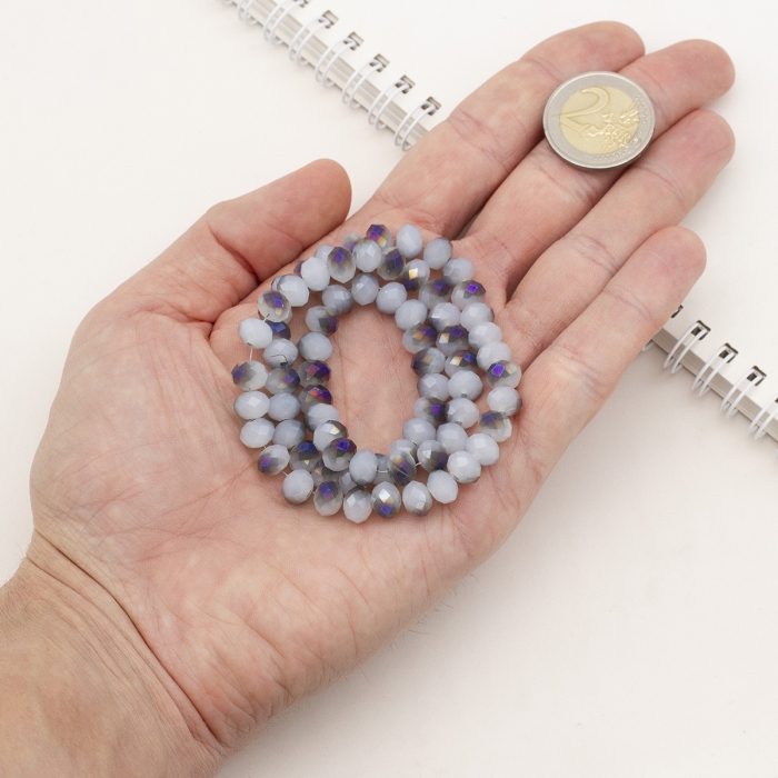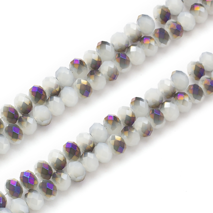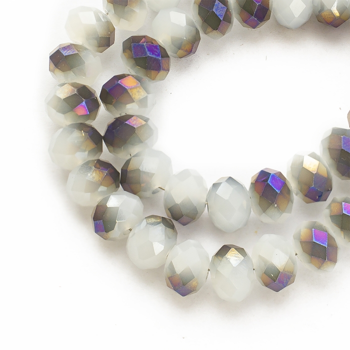 Бусины Гальваника Стекло, под Нефрит, Полупокрытие, Граненые, Рондель, Цвет: Фиолетовый, Размер: 8х5мм, Отв. 1мм, около 72шт/36см/нить, (УТ000007648)