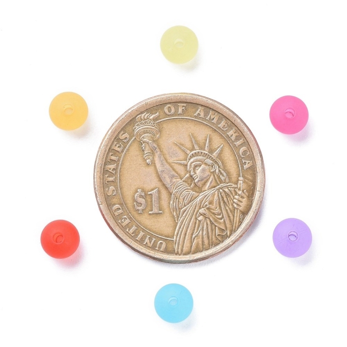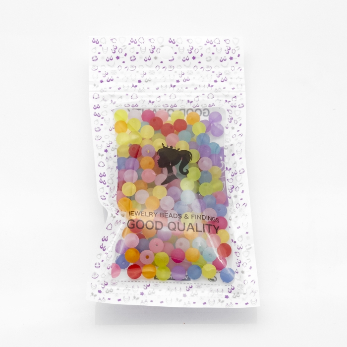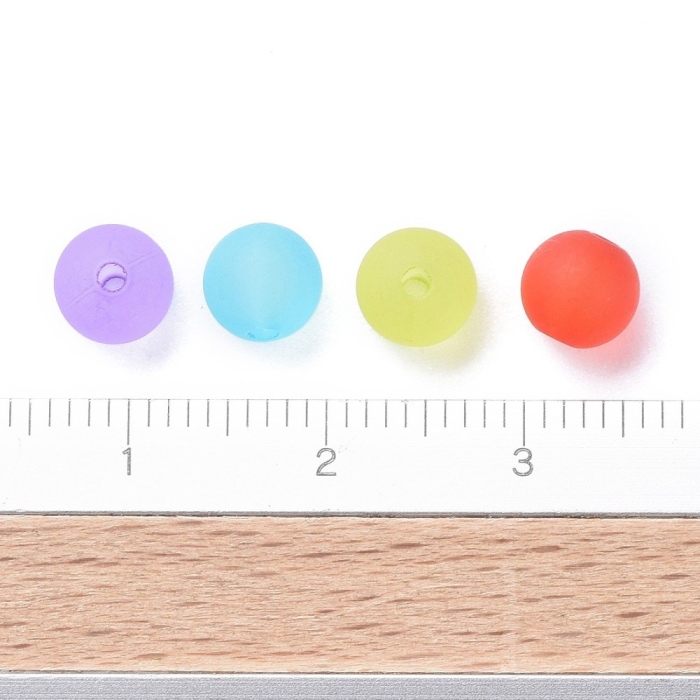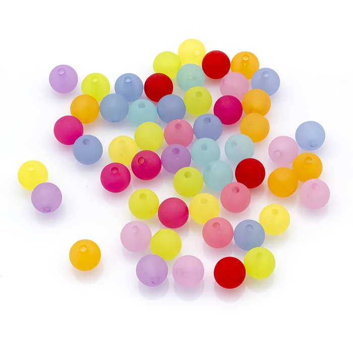 Круглые акриловые бусины с матовым (frosted) покрытием, что придает им нежный и стильный вид. Благодаря прозрачной основе и яркому цветовому смешиванию они создают легкий и современный акцент в украшениях. Легкие, крепкие и удобные в работе.