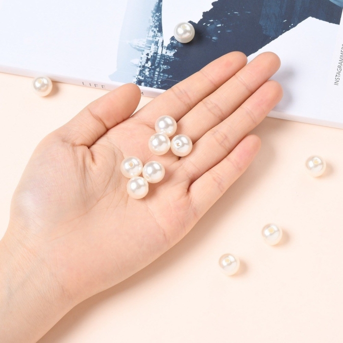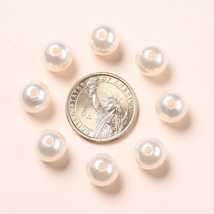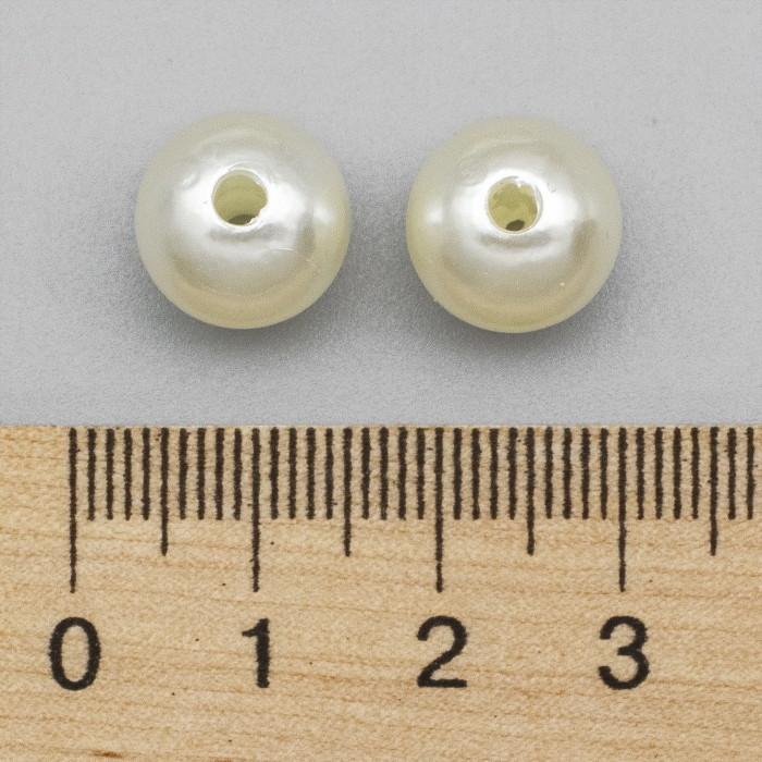 Жемчуг Бусины Акриловые, Глянцевые, Круглые, Цвет: Слоновая Кость, Размер: 12мм, Отв-тие 2.7мм, около 28шт/25г, (УТ0030238)