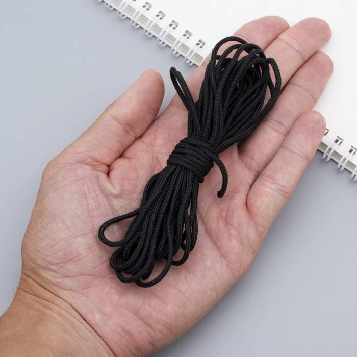 Шнур Паракорд Полиэстер и Спандекс 16-ти слойный, Цвет: Черный, Размер: 2мм, (УТ100005859)