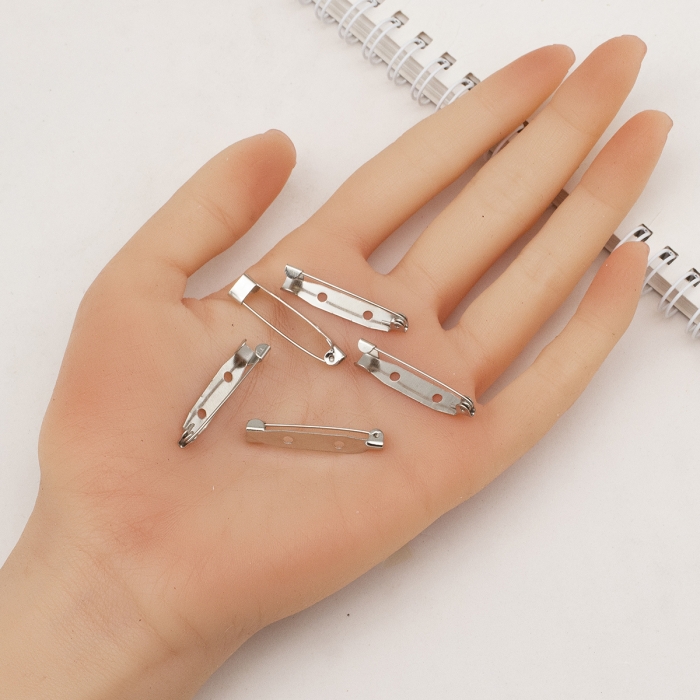 Железная основа под брошь в виде булавки с двумя отверстиями предназначена для создания индивидуальных и оригинальных брошей. Благодаря двум отверстиям можно надёжно крепить различные декоративные элементы, такие как подвески, бусины или ткани, создавая уникальные дизайны. Основа изготовлена из железа, что гарантирует долговечность и устойчивость изделия.