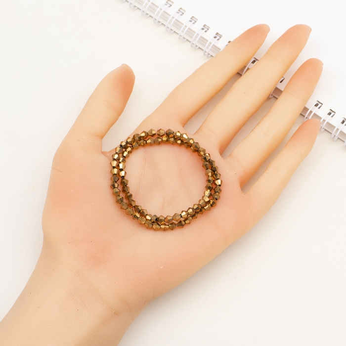 Бусины Гальваника Стекло, Биконус, Медный, 4х4.5мм, Отв-тие 1мм, около 80шт/30см/нить, (УТ100013998)