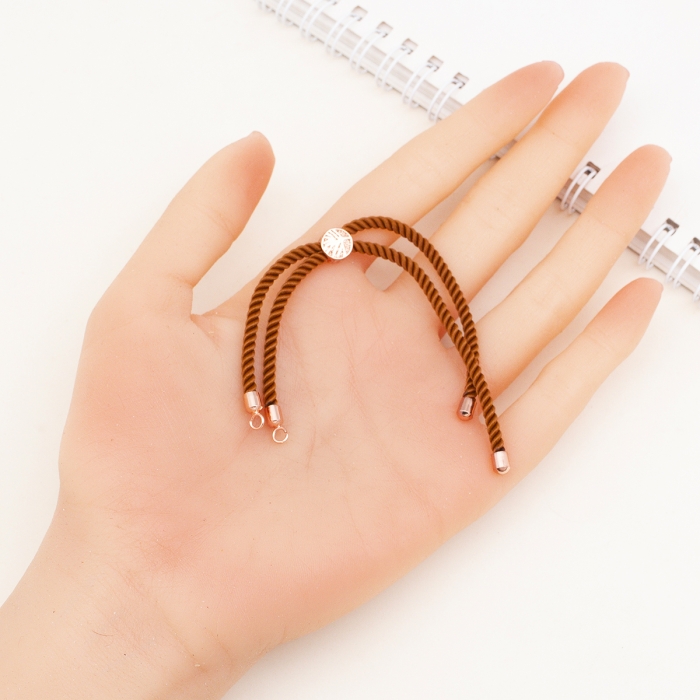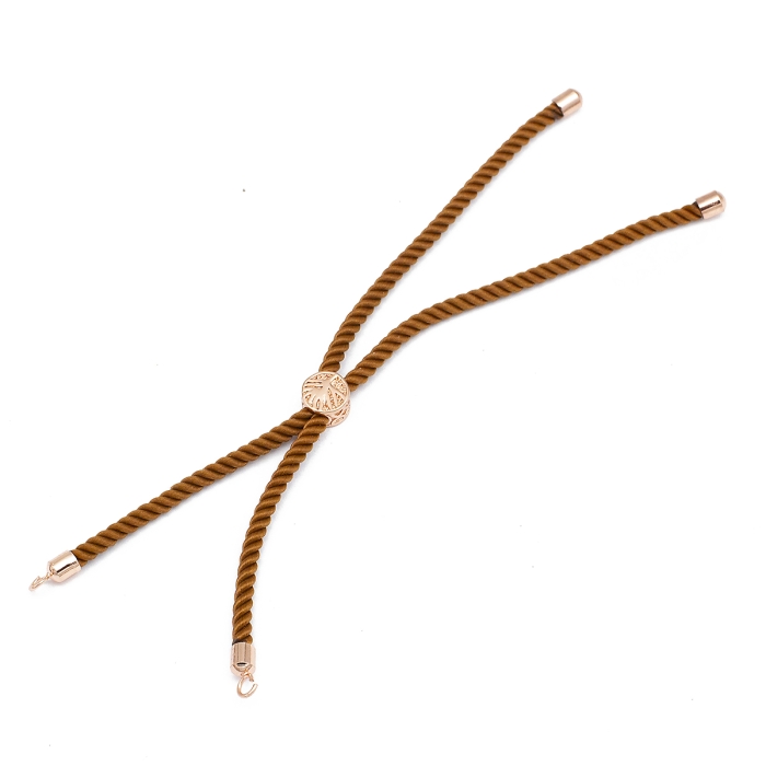 Основа под Браслет из Нейлона, Фурнитура из Эко Латуни с Позолотой, Цвет: Коричневый, Длина 21см, Толщина 3мм, Отв 2.5мм, (УТ100014801)