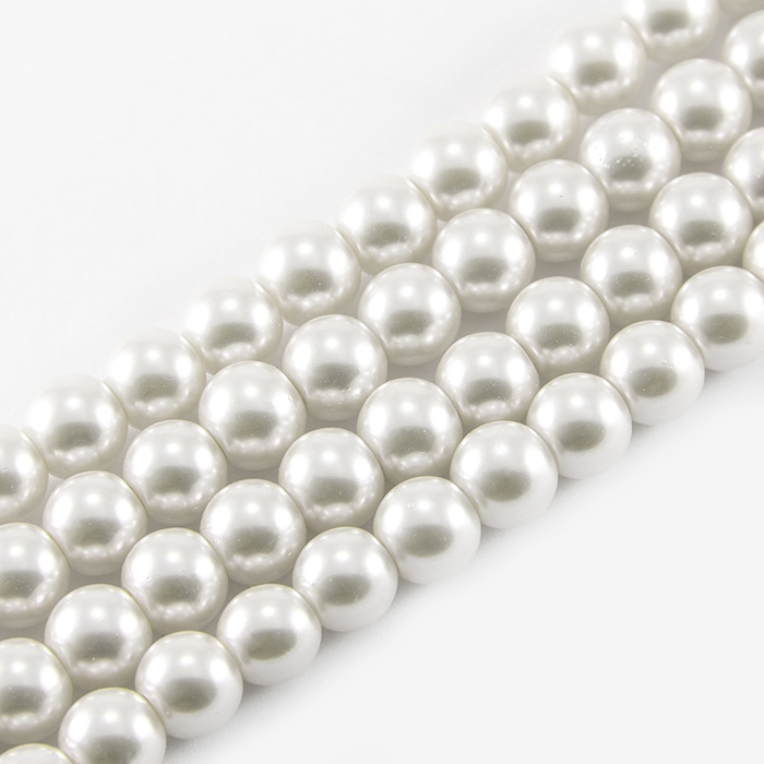 Жемчуг Бусины Стеклянные Глянцевые, Круглые, Белый, 8мм, Отверстие 1мм, около 90шт/72см/нить, (УТ000003599)