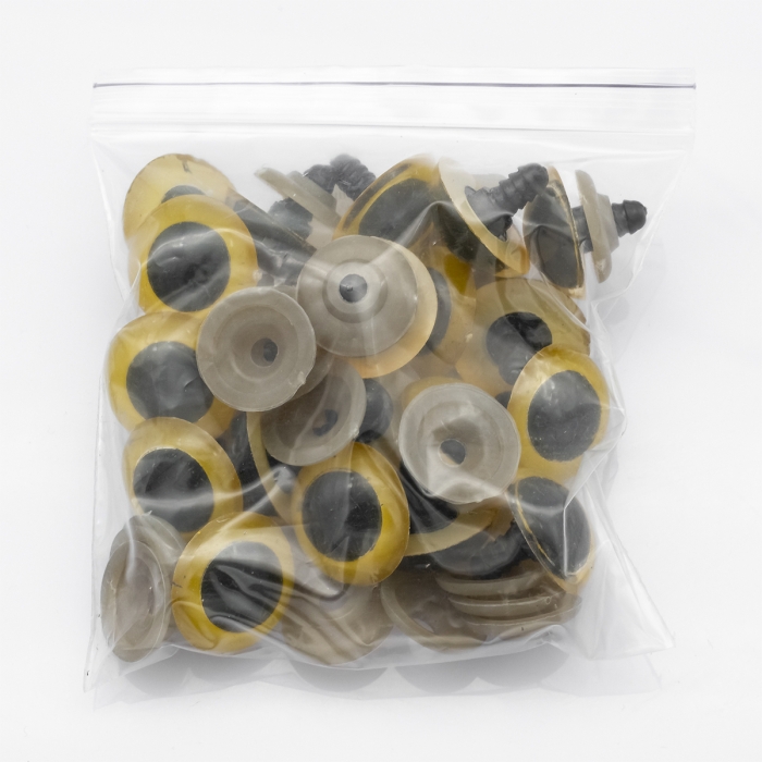 Глазки с Фиксатором и Штифтом, для Игрушек, Круглые, Цвет: Золотистый, Размер: 24мм, (УТ100017587)