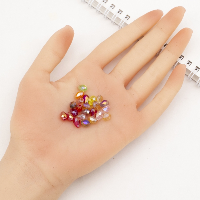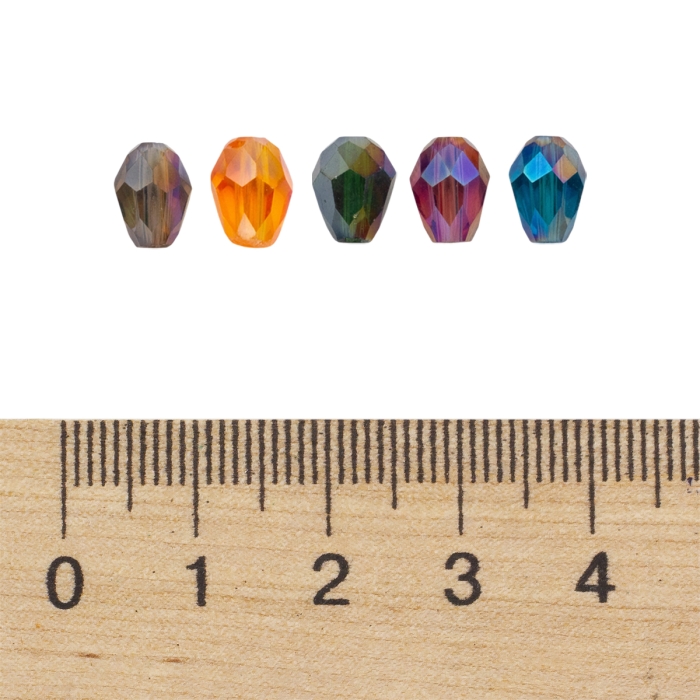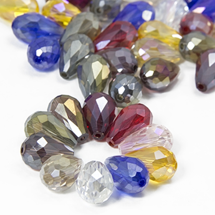 Бусины Стеклянные Капля Прозрачные Граненые, Микс, 12х8мм, Отверстие 1мм, около 53шт/60см/нить, (УТ100019103)