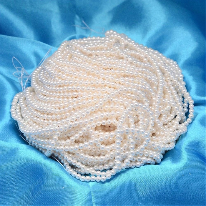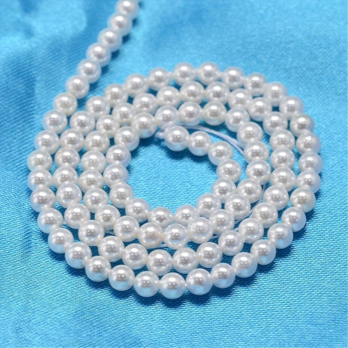 Жемчуг Shell Pearl, Круглый, Белый, 3мм, Отверстие 0.5мм, около 122шт/40см/нить. (УТ100020812 )