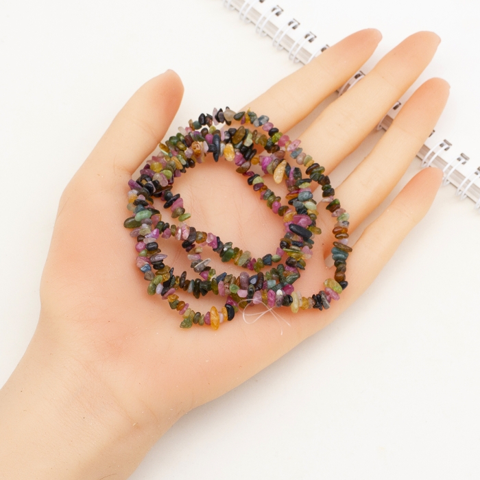 Бусины Натуральный Турмалин, Класс А, на нитях, Крошка, Микс, 3-5x7-13x2-4мм, Отв. 0.4мм, около 88см/нить, (УТ100023049)