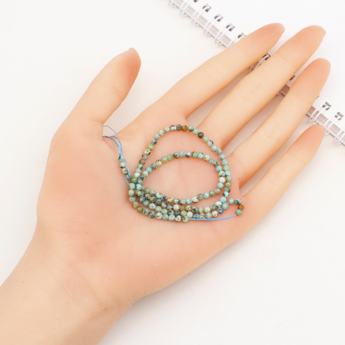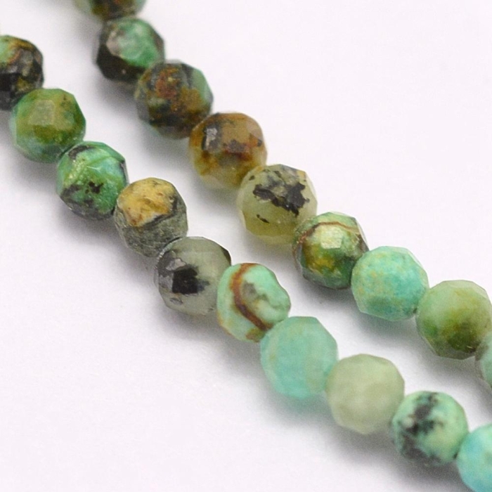 Бусины Натуральная Африканская Бирюза, На нитях, Круглые, Граненые, Зеленый, 3мм, Отверстие 0.5мм, около 113шт/38см/нить (УТ100023396)