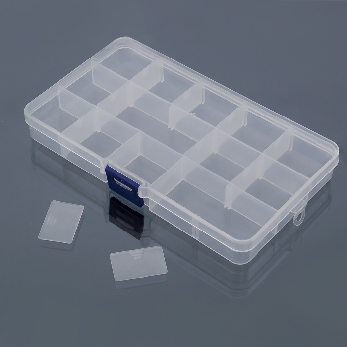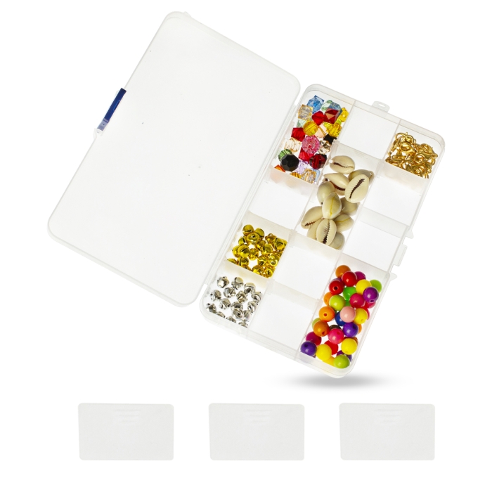 Контейнер для Бусин, Стаз, Фурнитуры Пластиковый на 15 Съемных Отсеков Прямоугольный, Бесцветный, 17.5x10.2x2.2см, (УТ100023494)