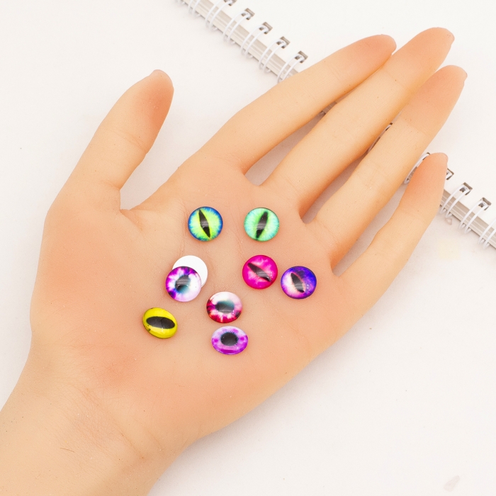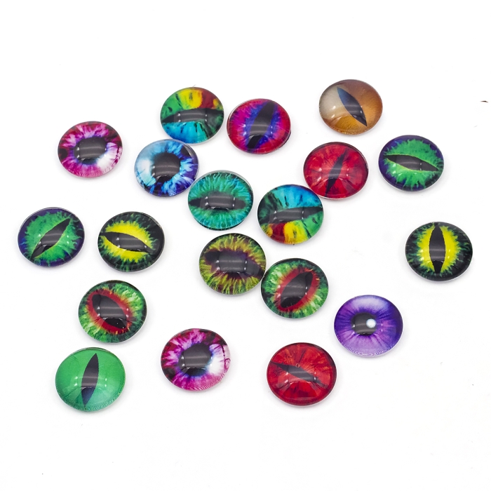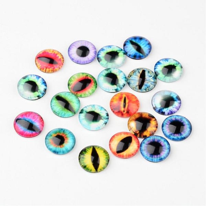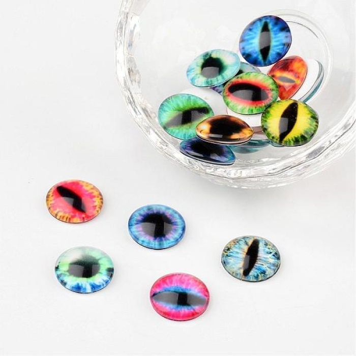 Кабошоны Глазки Дракона Стеклянные Круглые, Микс, 12х4мм, (УТ100024410)
