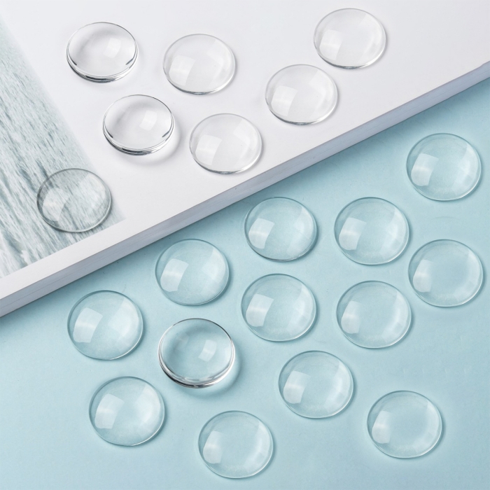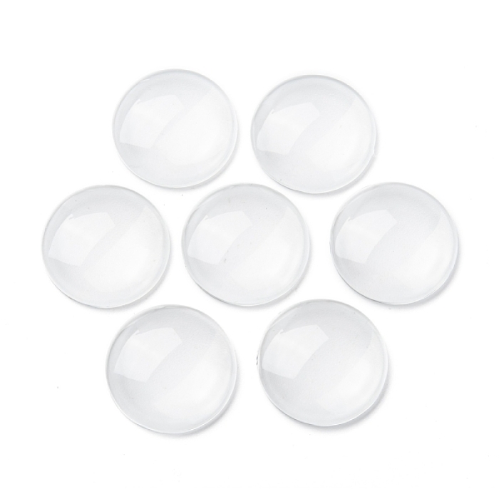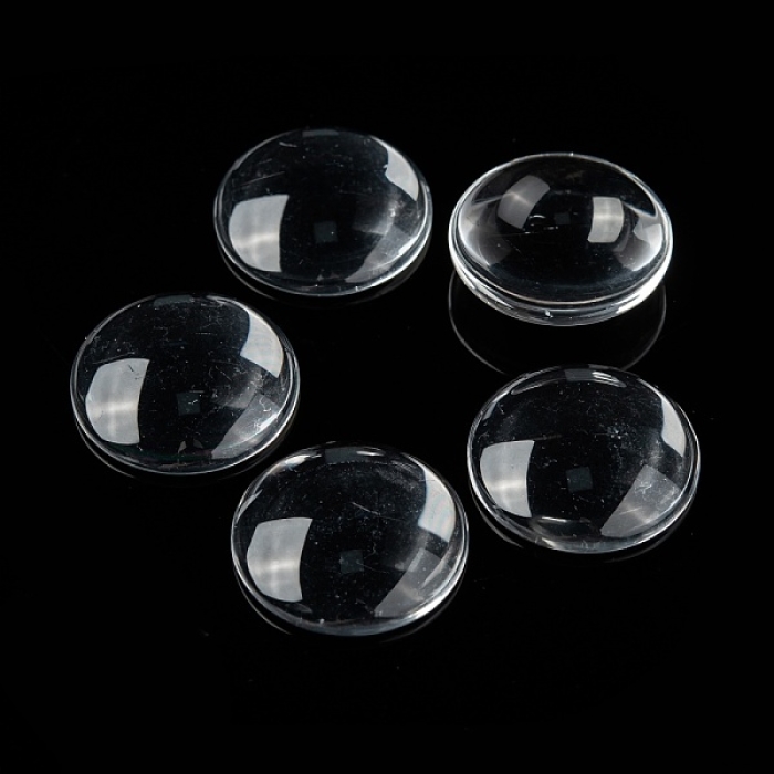 Кабошоны Стеклянные Круглые Прозрачные, Бесцветные, 25х7мм, 20шт/упак, (УТ100024421)