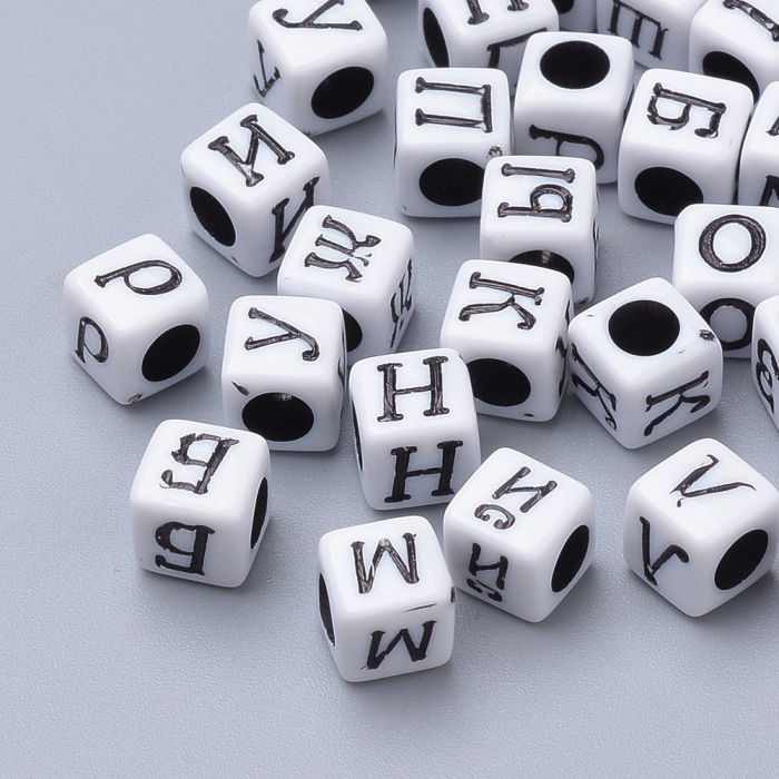 Бусины Акрил Буквы Микс, Круглые Плоские, Цвет: Серебро, Размер: 7x3.5мм, Отверстие 1мм, около 175шт/25г, (УТ100013107)