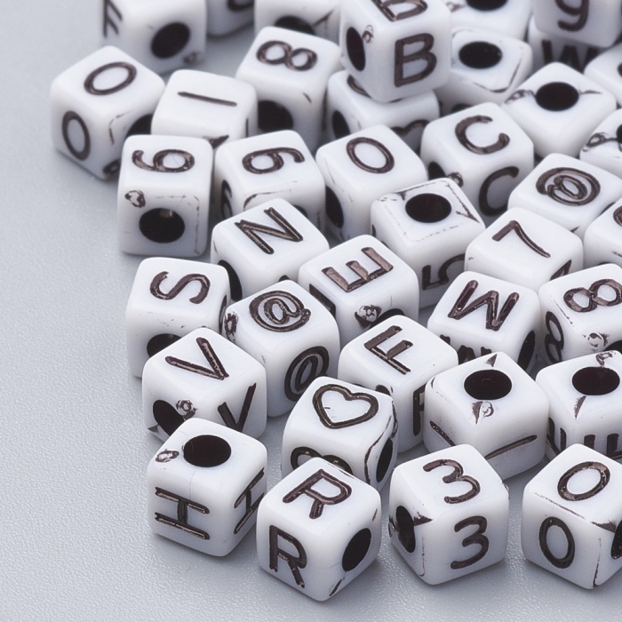 Бусины Акрил Буквы Микс, Круглые Плоские, Цвет: Серебро, Размер: 7x3.5мм, Отверстие 1мм, около 175шт/25г, (УТ100013107)
