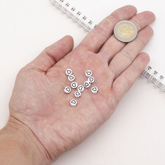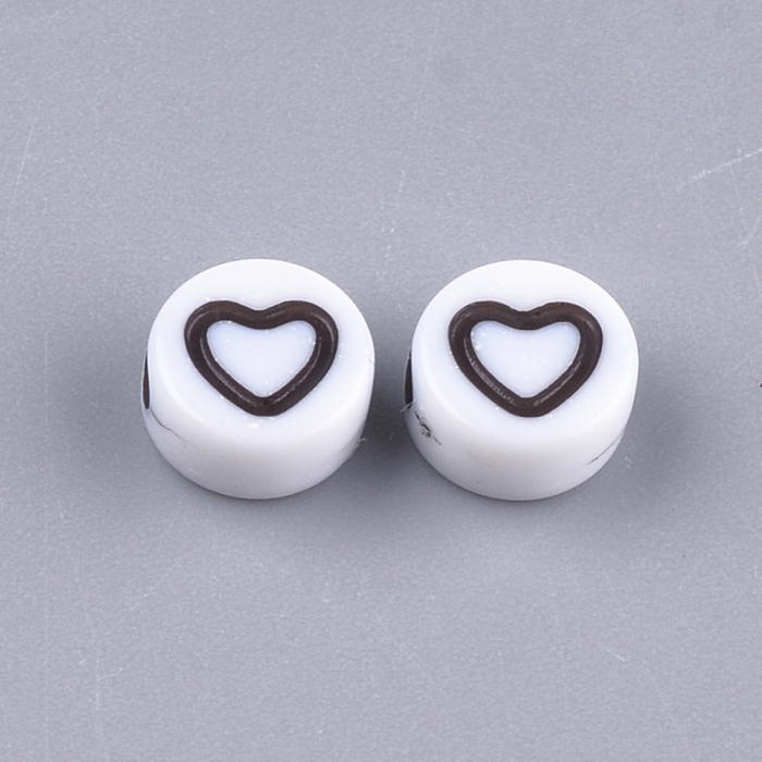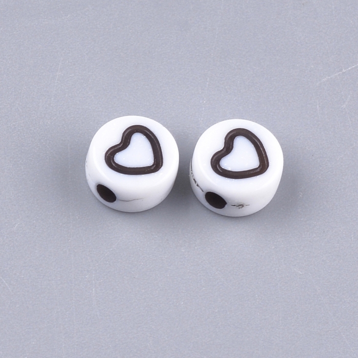 Бусины Акрил Крафт Стиль, Круглые Плоские с Сердцем, Цвет: Белый, Размер: 7х3.5мм, Отверстие 1.5мм, около 200шт/25г, (УТ100024871)
