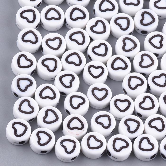 Бусины акрил Крафт Стиль, Плоские Круглые с Сердцем, Белые.