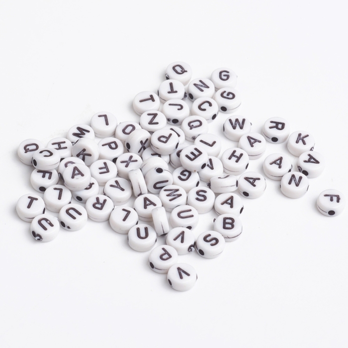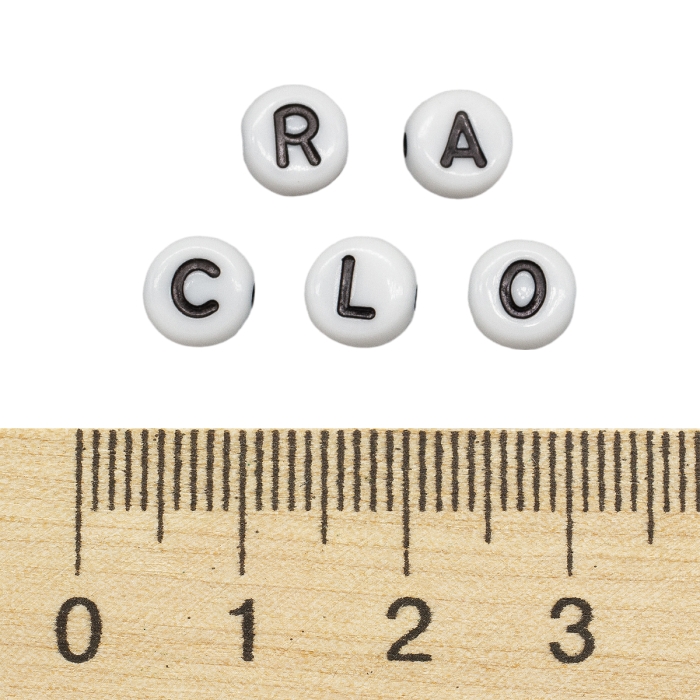 Бусины Акрил Буквы Микс, Круглые Плоские, Цвет: Серебро, Размер: 7x3.5мм, Отверстие 1мм, около 175шт/25г, (УТ100013107)