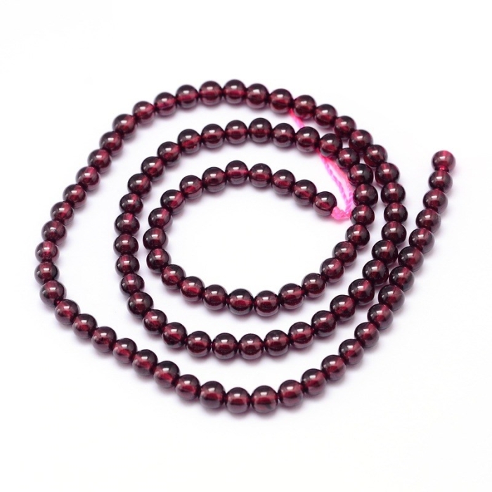 Бусины Натуральный Гранат, Класс АА, Круглые, 4мм, Отверстие: 1мм, около 90шт/38см/нить, (УТ100026733)