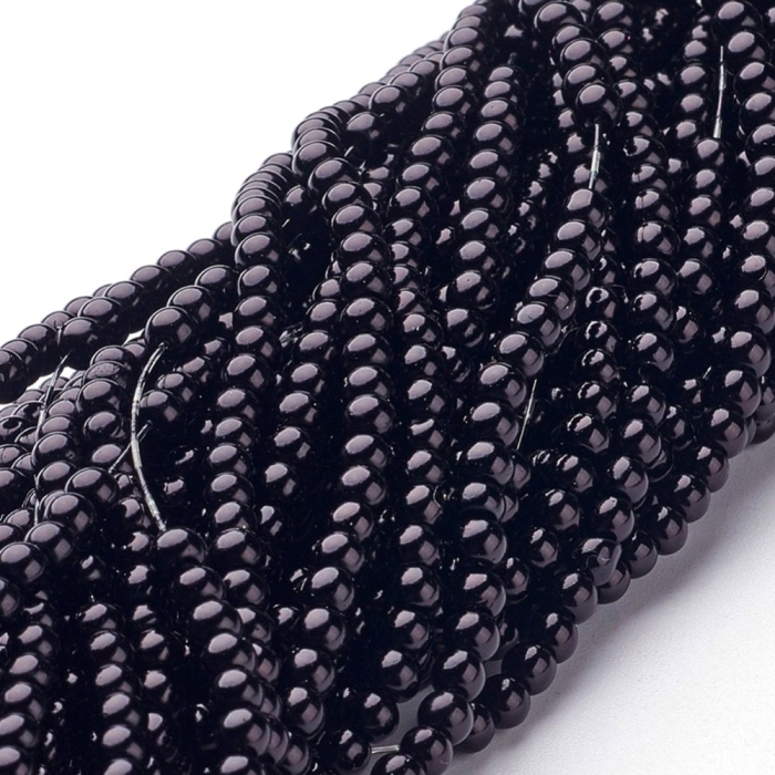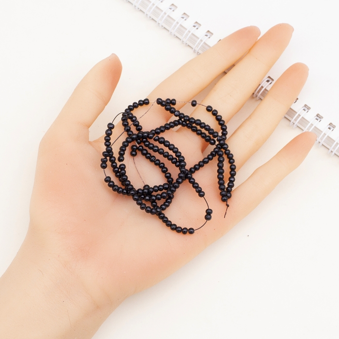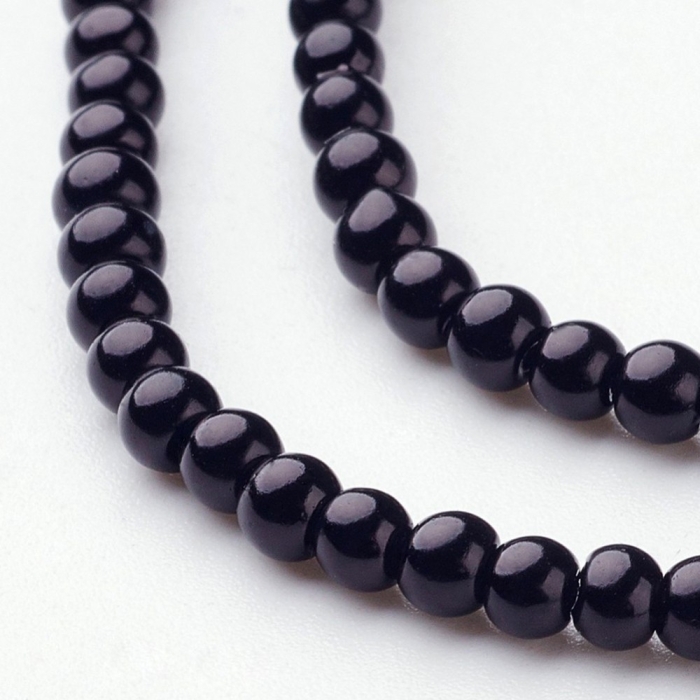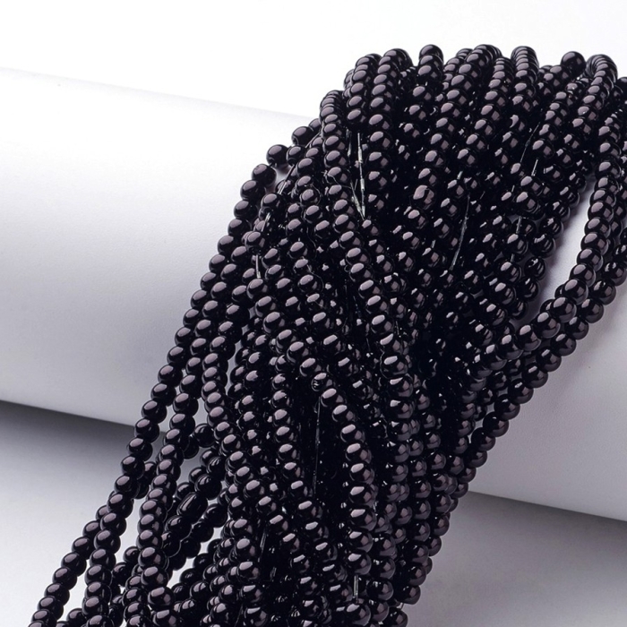 Жемчуг Бусины Стекло 3мм, Глянцевые, Круглые, Черный, 3мм, Отв-тие 1мм, около 185шт/55см/нить, (УТ100026909)