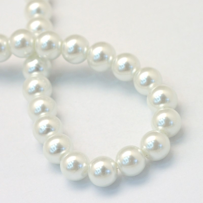 Жемчуг Бусины Стекло 8-9мм, Глянцевые, Круглые, Цвет: Белый, Диаметр: 8-9мм, Отверстие 1мм, около 100шт/75см/нить, (УТ100026932)