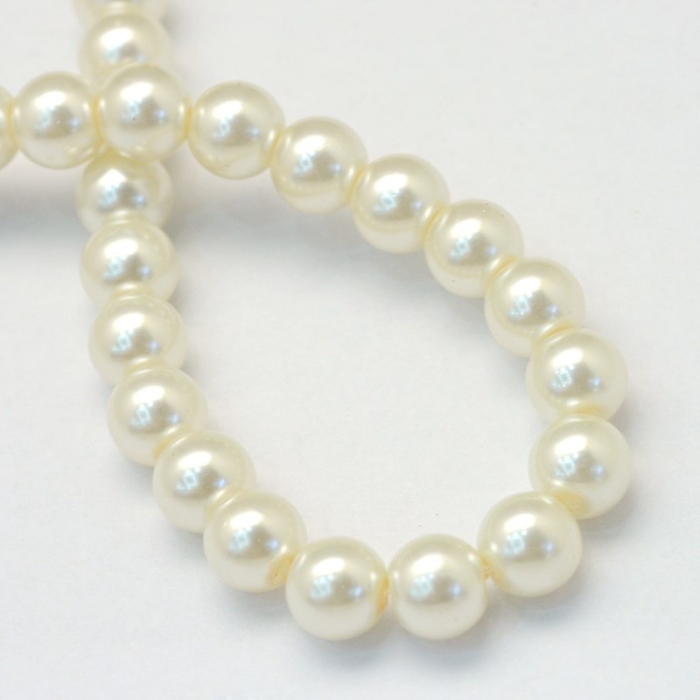 Жемчуг Бусины Стеклянные Глянцевые Круглые, Слоновая Кость, 3-4мм, Отверстие 0.5мм, около 185шт/57см/нить, (УТ100026935)