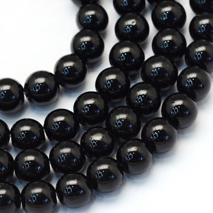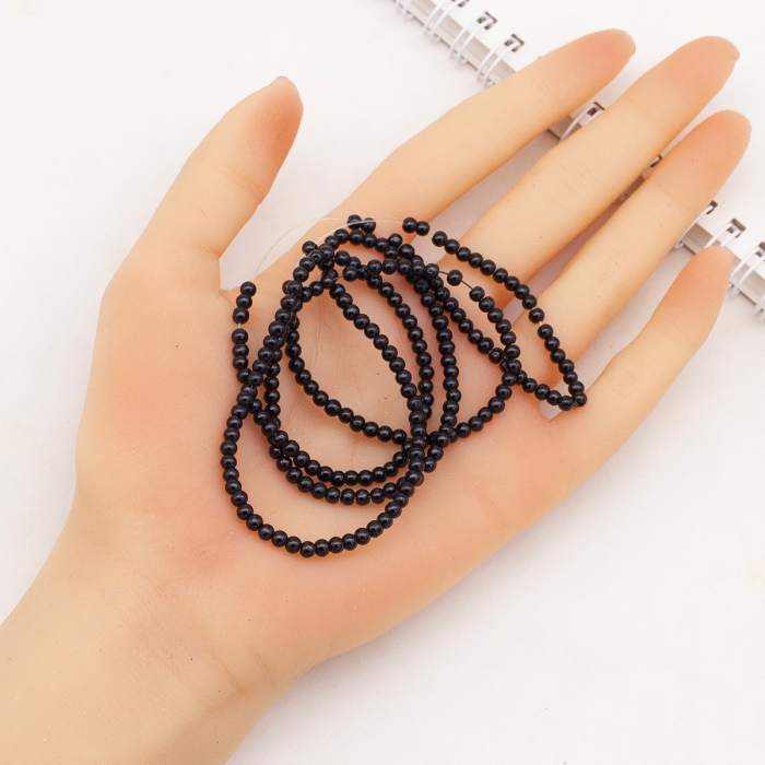 Жемчуг Бусины Стеклянные Глянцевые Круглые, Черный, 3-4мм, Отверстие 0.5мм, около 185шт/57см/нить, (УТ100026936)