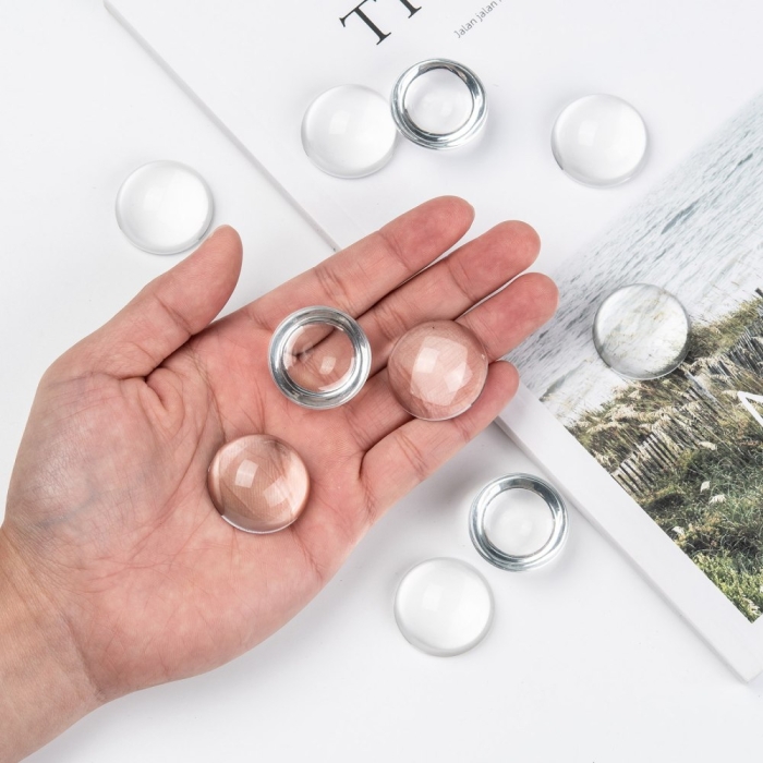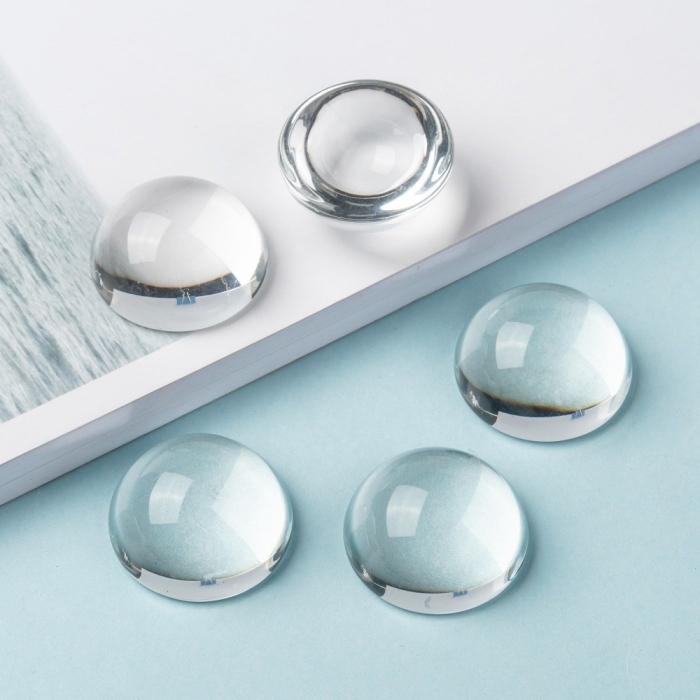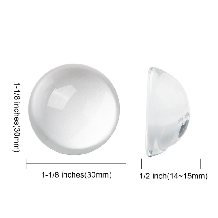 Кабошоны Стеклянные Круглые Прозрачные, Бесцветные, 30x14-15мм, (УТ100027193)