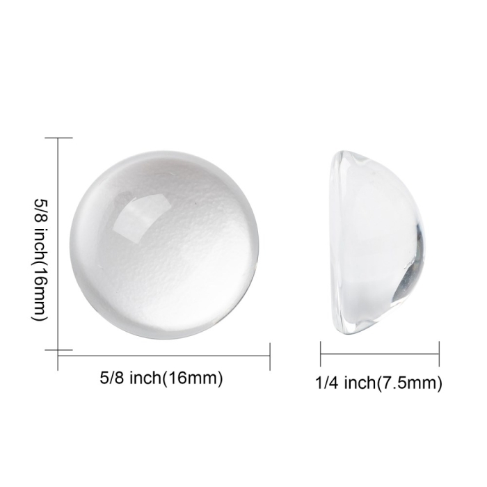 Кабошоны Стеклянные Круглые, Бесцветные, 16x7.5мм, 20шт/упак, (УТ100027654)