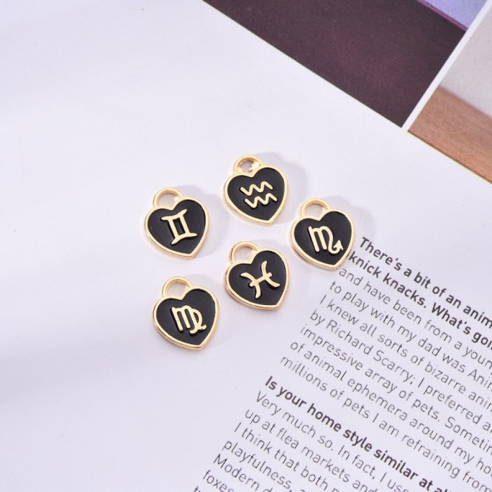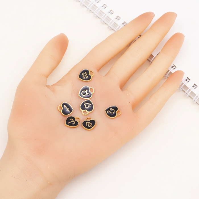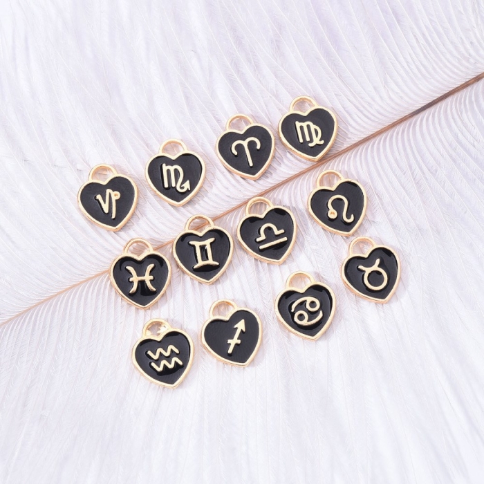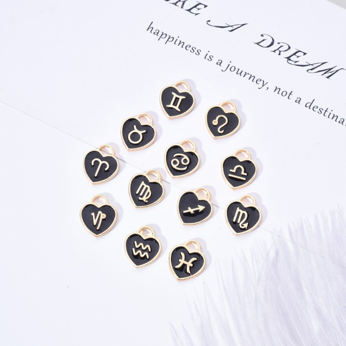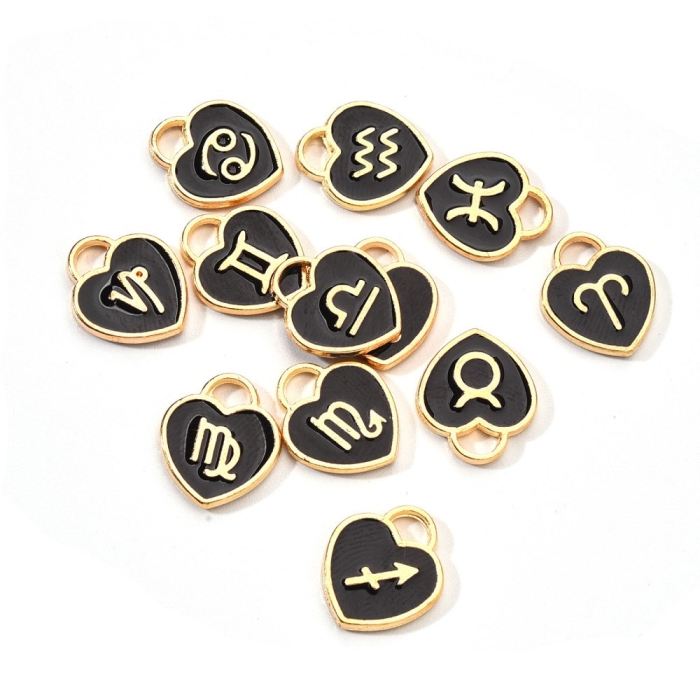 Подвески Набор Знаки Зодиака, Эмаль, Сердце, Знаки Зодиака, Черный, 14х12х1.8мм, Отверстие: 4мм, 12 шт/набор, (УТ100027906)