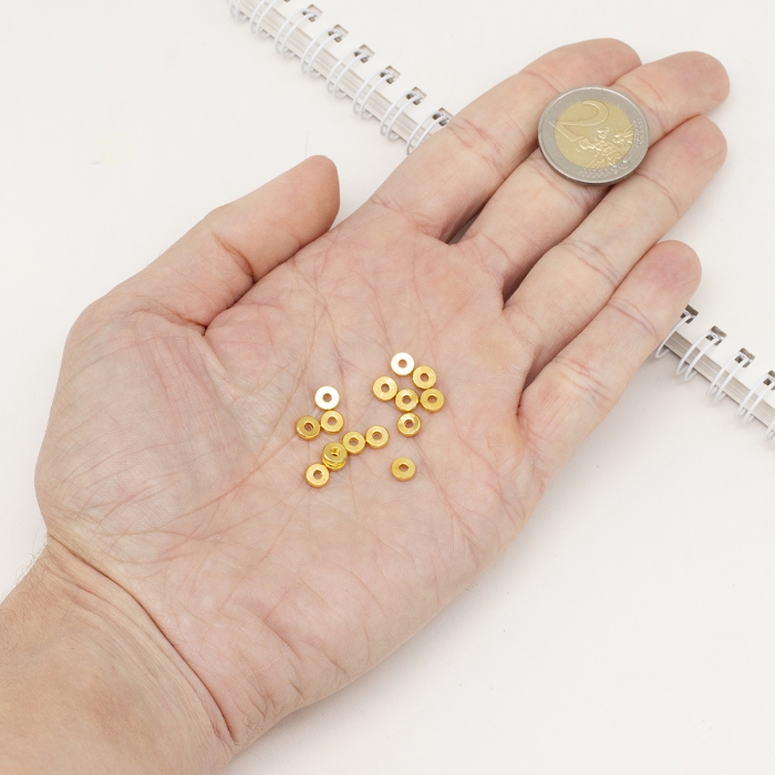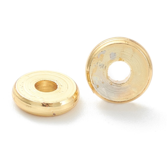 Бусины Латунь, Стойкое Покрытие, Круглые, Плоские, Позолота 18К, 6х1.5мм, Отверстие 1.8мм, (УТ100028261)
