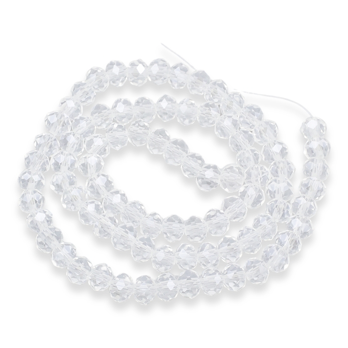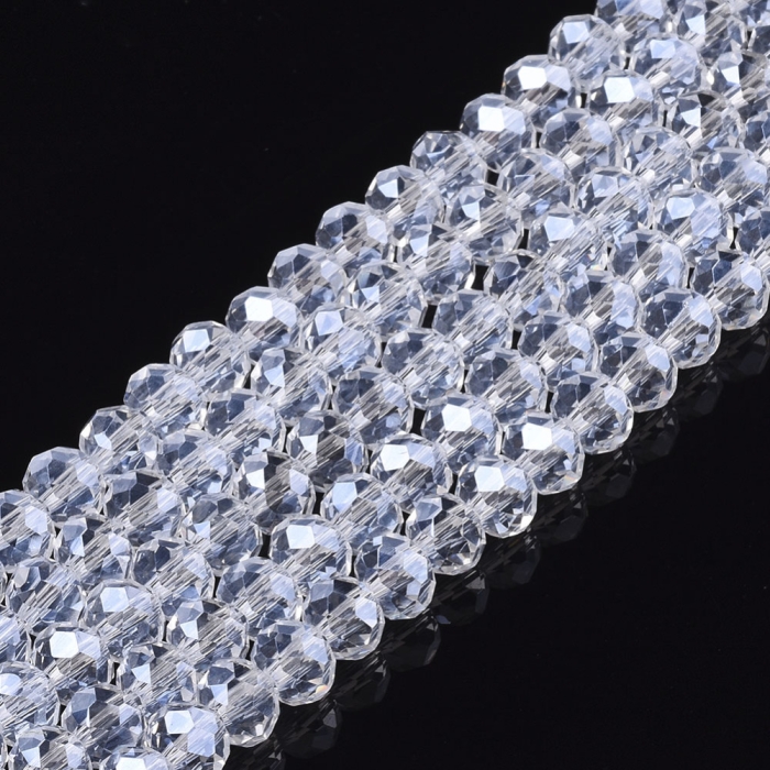 Бусины Гальваника Стеклянные Граненые Рондель, Бесцветные, 6х5мм, Отверстие 1мм, около 80шт/39см/нить, (УТ100028758)