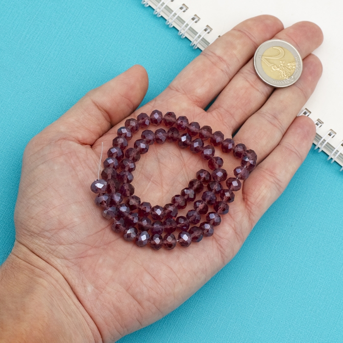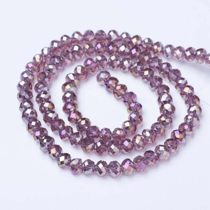 Бусины Гальваника Стекло АВ-Цвет, Граненые, Рондель, Цвет: Сиреневый, Размер: 8х6мм, Отв-тие: 1мм, около 69шт/39см/нить, (УТ100028763)