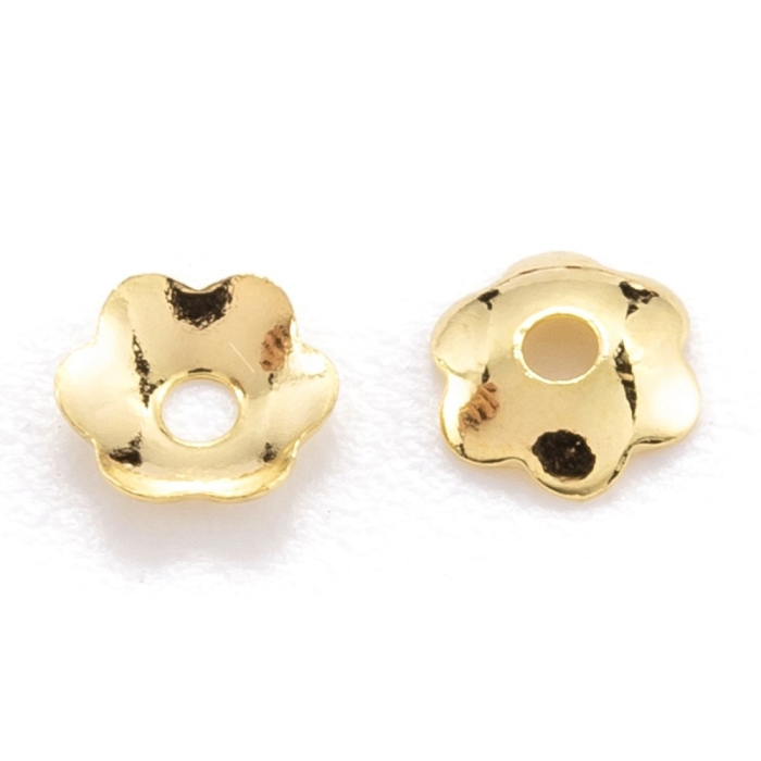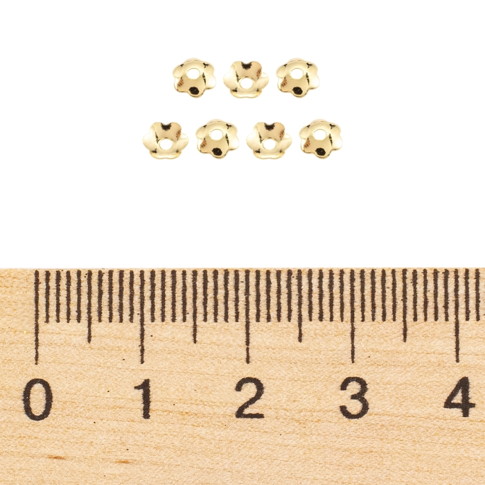 Шапочки для Бусин, Латунь, Цветок, Стойкое Покрытие, Позолота 18К, 4х1мм, Отверстие 1мм, (УТ100029443)