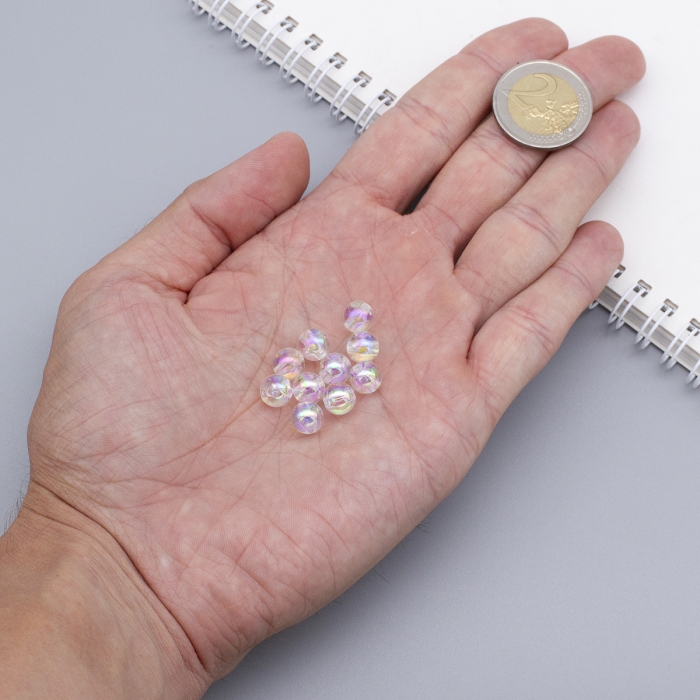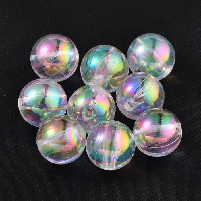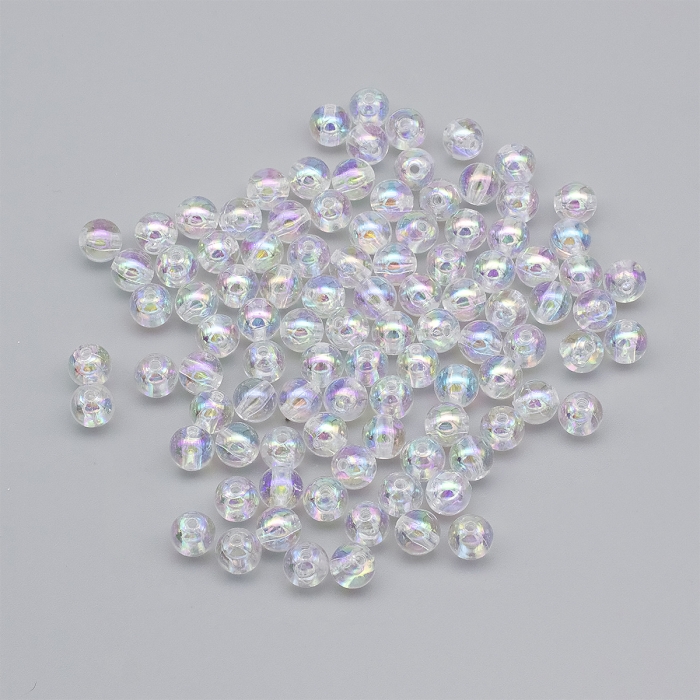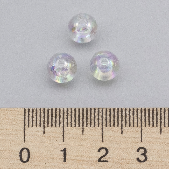 Бусины Акрил Прозрачные, Экологичные, Круглые, АВ цвет, Бесцветный, 8мм, Отверстие 1.5мм, 90шт/25г, (УТ100029601)