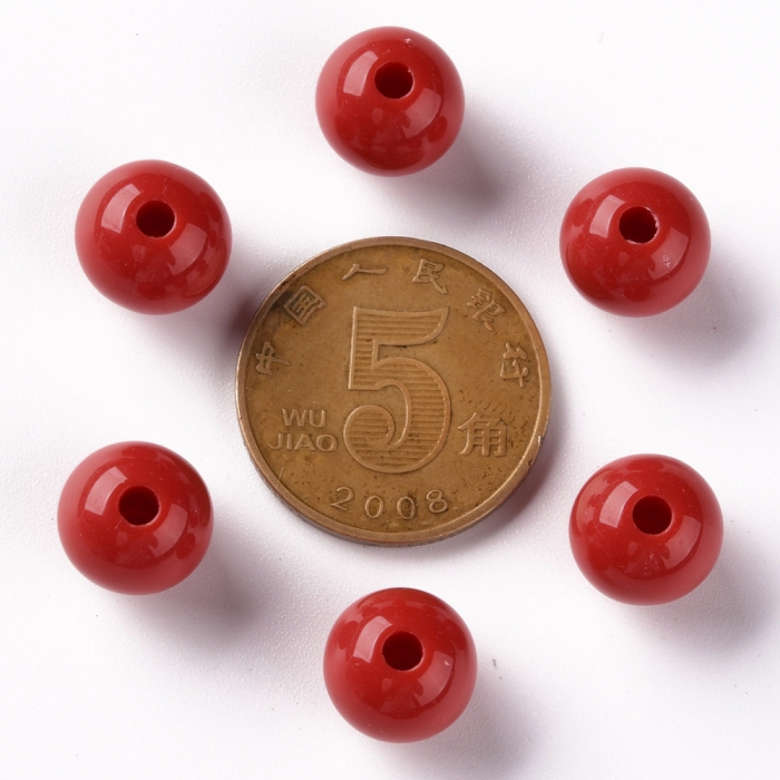 Бусины Акриловые Круглые, Кирпичный, 10х9мм, Отверстие: 2мм, около 90шт/50г, (УТ100029559)