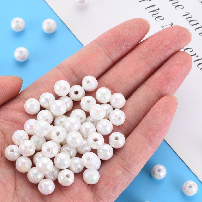 Жемчуг Бусины Стеклянные Глянцевые Круглые, Слоновая Кость, 10мм, Отверстие 1мм, около 75шт/75см/нить, (УТ100007115)