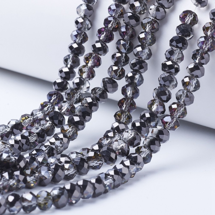 Бусины Австрийский Хрусталь Имитация Класс АА, Стеклянные, Биконус, Гальваника Радужные, Бесцветный Бензин, 4х4мм, Отверстие 1мм, около 80шт/30см/нить, (УТ0031053)