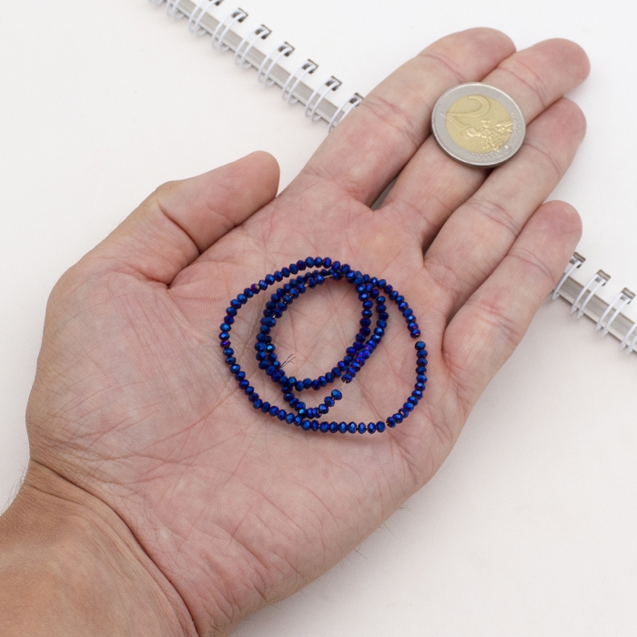 Бусины Гальваника Стекло, Синее Покрытие, Граненые, Рондель, 3х2мм, Отв-тие 0.8мм, около 155шт/38см/нить, (УТ100029664)