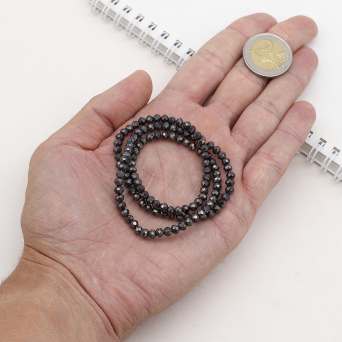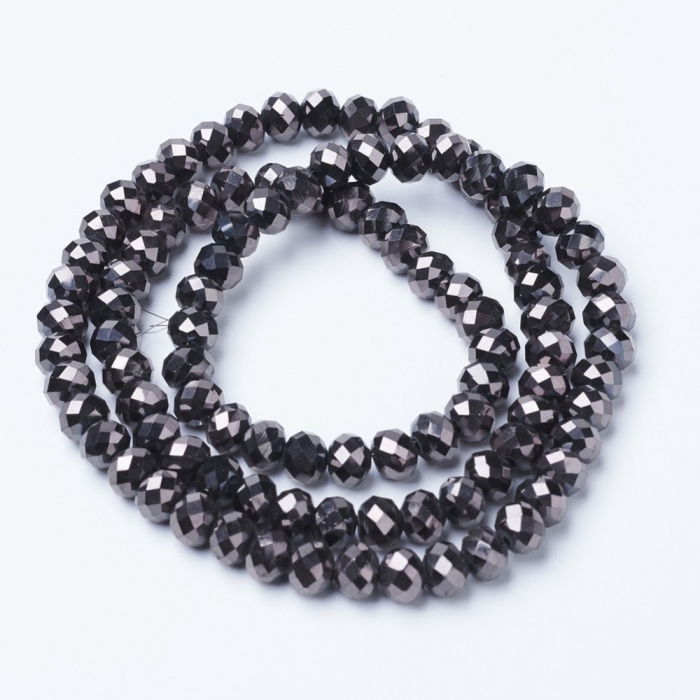 Бусины Гальваника Стекло, Черное Покрытие, Граненые, Рондель, Размер: 4х3мм, Отв-тие 0.4мм, около 115шт/40см/нить. (УТ100029671)