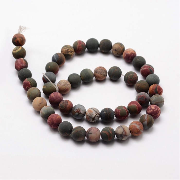 Бусины Натуральная Яшма Пикассо Круглые, 10мм, Отверстие 1мм, около 36шт/36см/нить, (УТ100030094)