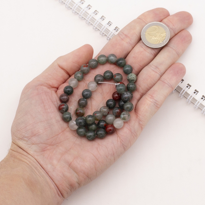 Бусины Натуральный Африканский Кровавый Камень - Гелиотроп, на нитях, Круглые, Неокрашенные, 8-9мм, Отв. 0.8-9мм, около 40шт/36см/нить (УТ100030141)