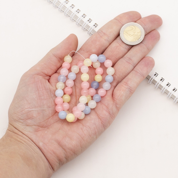 Бусины Натуральный Белый Нефрит, имитация Морганита, на нитях, Круглые, Красочные, 8мм, Отверстие 1мм, около 45шт/36.5см/нить, (УТ100030170)