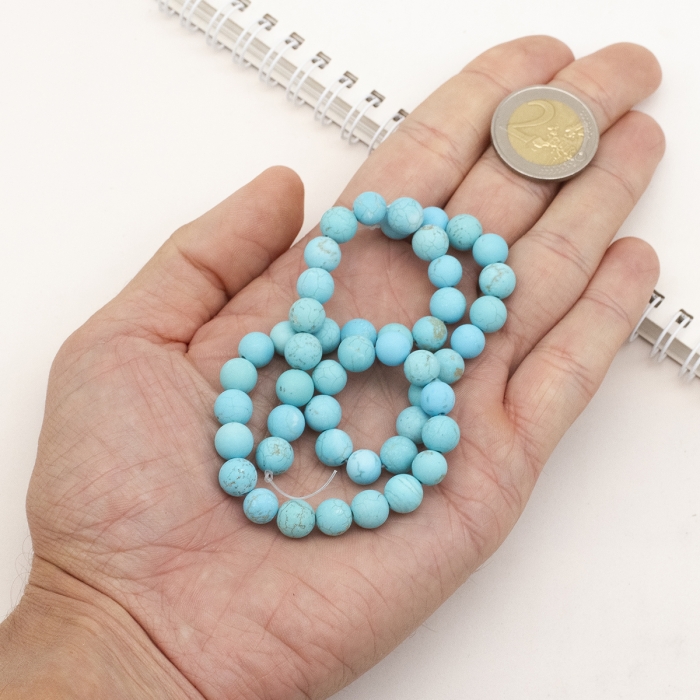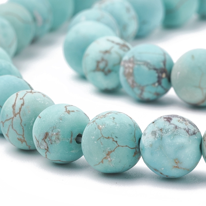 Бусины Натуральный Говлит, На нитях, Матовые, Круглые, Термоокрашенные, Бирюзовый, 8мм, Отверстие 1мм, около 43шт/37.5см/нить, (УТ100030211)Цвет: