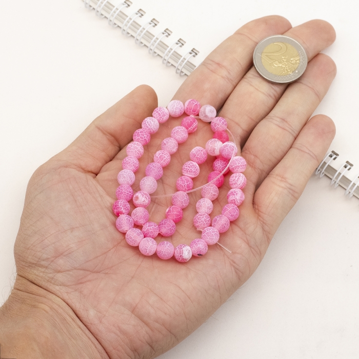 Бусины Выветренный Агат Натуральный, Круглые, Термоокрашенные, Морозный Стиль, На нитях, Цвет: Ярко-розовый, Диаметр: 8мм, Отв. 1.2мм, около 43шт/34см/нить, (УТ100030215)