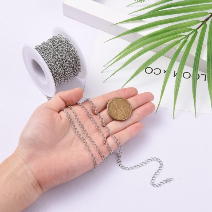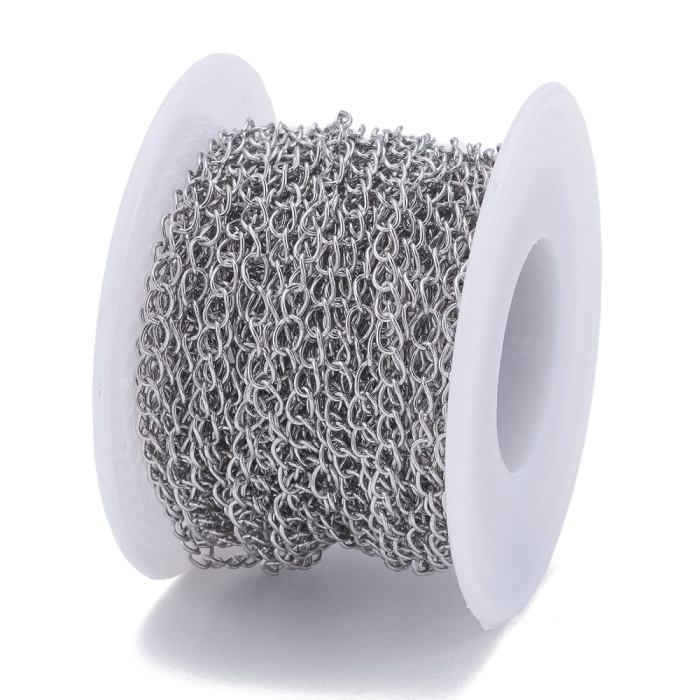 Цепь Витая, Нержавеющая Сталь, Паяная, Размер звена: 5х3.5х0.6мм, 10м/катушка, (УТ100030226)