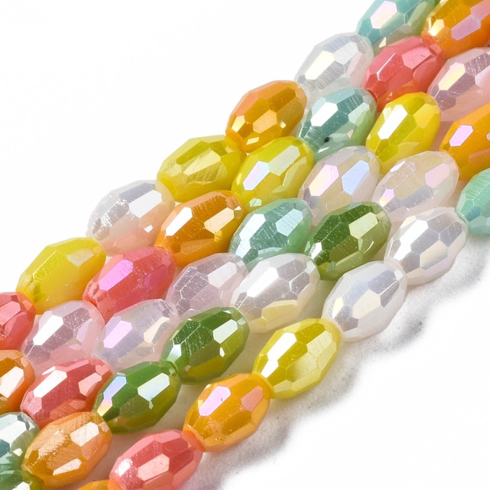 Бусины Стеклянные Гальваника АВ-Цвет, Граненые, Рис, на нитях.