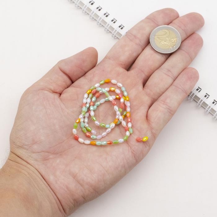 Бусины Гальваника Стекло АВ-Цвет, Граненые, Рис, Цвет: Оранжевый, Размер: 4.5х3мм, Отверстие 0.7мм, около 92шт/38см/нить, (УТ100030304)