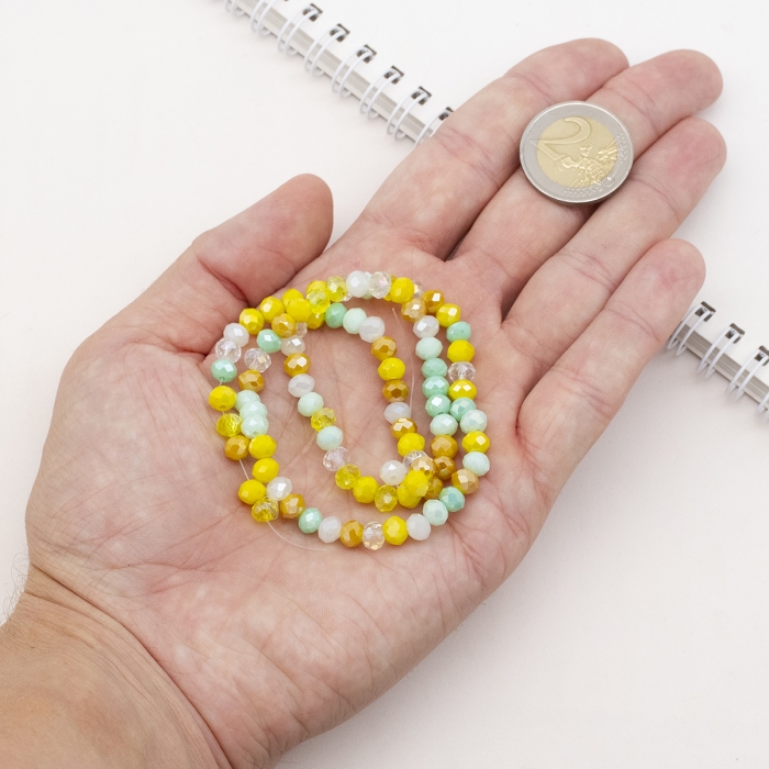 Бусины Гальваника Стекло, Граненые, Рондель, Цвет: Желтый, Размер: 5.5-6х5мм, Отверстие 1мм, около 88шт/40см/нить, (УТ100030315)
