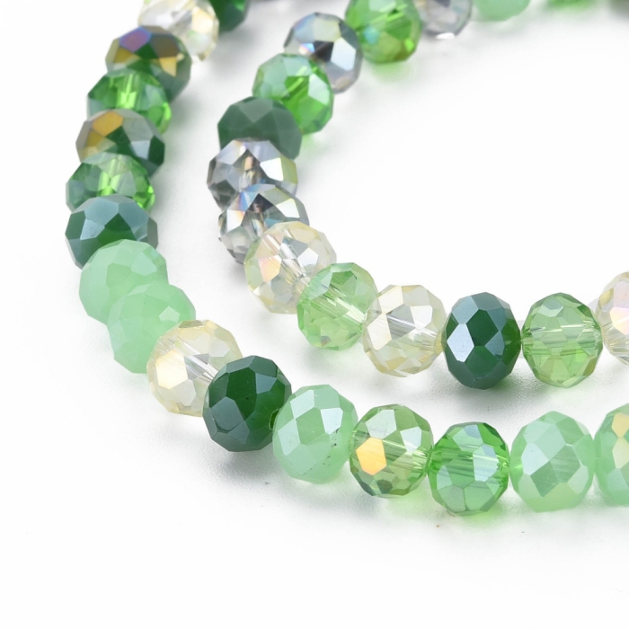Бусины Гальваника Стекло АВ-Цвет, Граненые, Рондель, Цвет: Морской зеленый, Размер: 7.5-8х6мм, Отверстие 1.5мм, около 65шт/40см/нить, (УТ100030322)