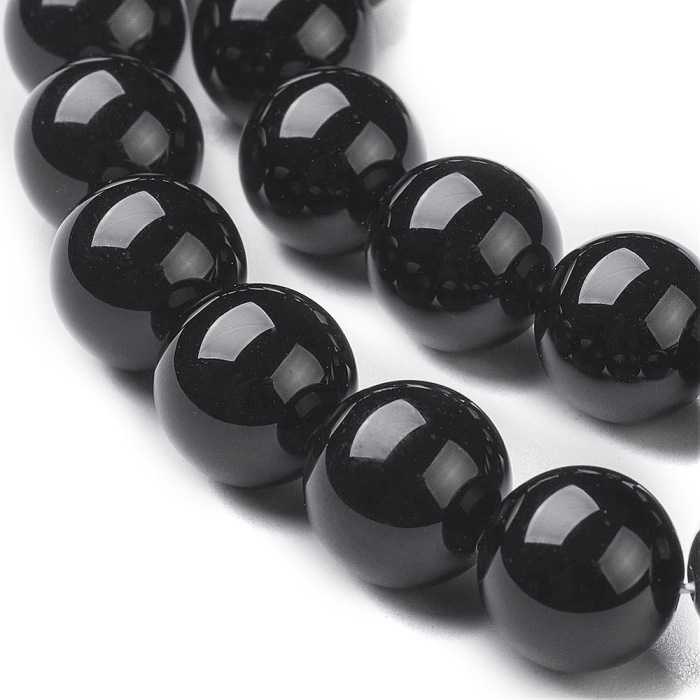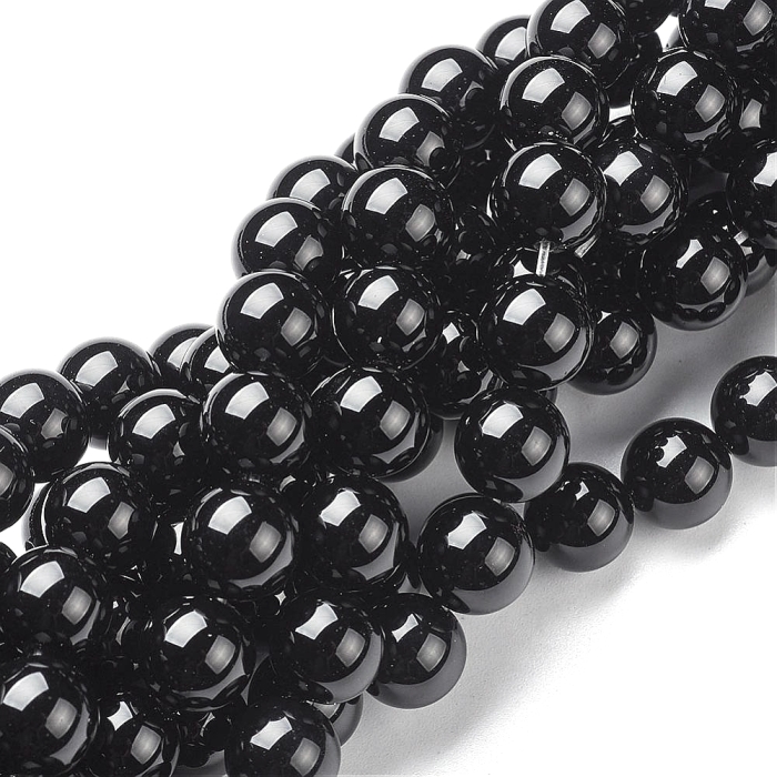 Бусины Натуральный Черный Оникс, Класс А, на нитях, Круглые, 10мм, Отверстие 1мм, около 35шт/36см/нить, (УТ100030873)
